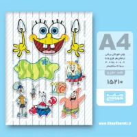 طرح چاپ خوراکی کارتونی باب اسفنجی، مجموعه ای از شخصیت های انیمیشن باب اسفنجی از جمله باب اسفنجی شلوار مکعبی، پاتریک ستاره، آقای خرچنگ، اختاپوس هشت پا، پلانکتون، سندی چیکس، خانه آناناسی، حباب به تعداد شش عدد، عروس دریایی و جلبک هرکدام به تعداد دو عدد در طرحها و ارتفاع های متفاوت از چهار سانت تا دوازده سانت به تعداد 17 آیتم در یک صفحه A4 خوراکی مناسب استفاده بر روی دیواره، سطح کیک و به عنوان تاپر روی کیک