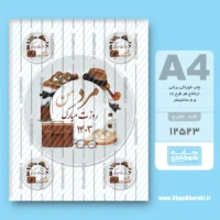 طرح چاپ خوراکی روز پدر آیتم های مناسبتی روز مرد شامل دایره های زرد رنگ با تصویر سازی مینیمال از نماد کروات و سبیل به همراه یک قلب قرمز با اندازه های شش و دوازده سانت به تعداد 6 آیتم در یک صفحه خوراکی A4 مناسب استفاده برای دیواره، سطح و تاپر کیک، کاپ کیک، کوکی و آبنبات
