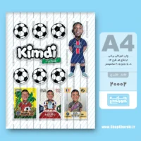 طرح چاپ خوراکی کارتونی کیمدی مجموعه ای از آیتم های ( Kimdi )، با تصاویری متنوع از رونالدو و کارت های تیم النصر، لوگوی کیمدی ، لوگوی النصر و توپ فوتبال به تعداد دو عدد در طرح ها و ارتفاع های متفاوت از پنج سانت تا چهارده سانت به تعداد 8 آیتم در یک صفحه A4 خوراکی مناسب استفاده بر روی دیواره، سطح کیک و به عنوان تاپر روی کیک، کاپ کیک و کوکی